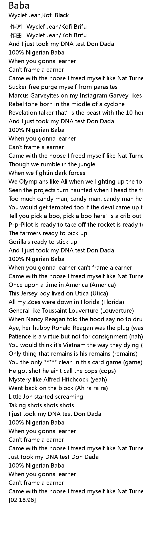 | [00:24.00] | And I just took my DNA test Don Dada |