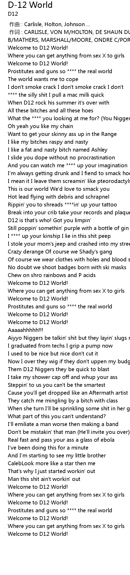 | [01:51.56] | Them D12 Niggers they be quick to blast |