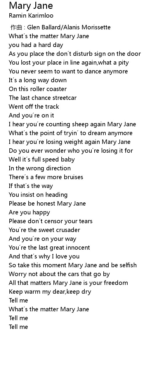 | [03:18.340] | All that matters Mary Jane is your freedom |