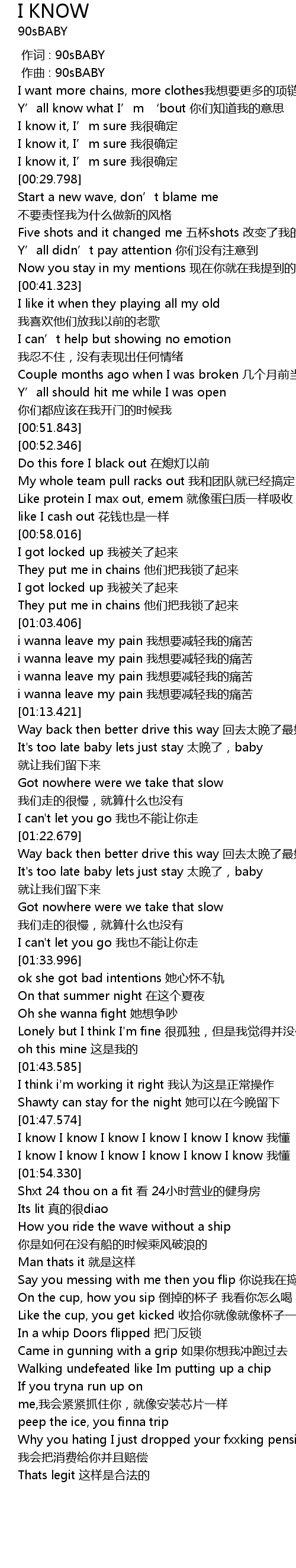 | [01:49.581] | I know I know I know I know I know I know 我懂 |