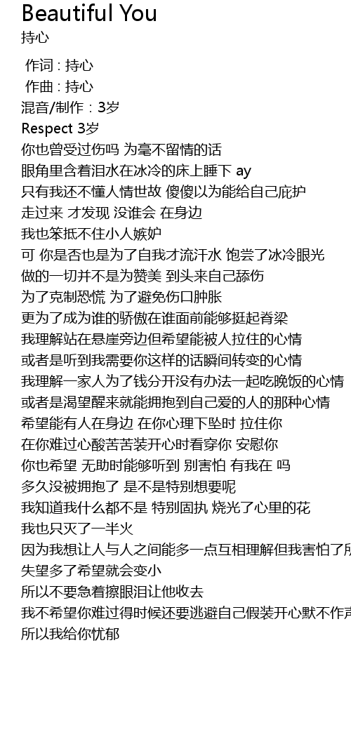 | [00:00.000] | 作词 : 持心 |