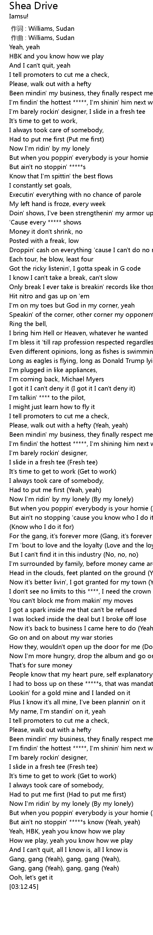 | [03:04.45] | Gang, gang (Yeah), gang, gang (Yeah) |