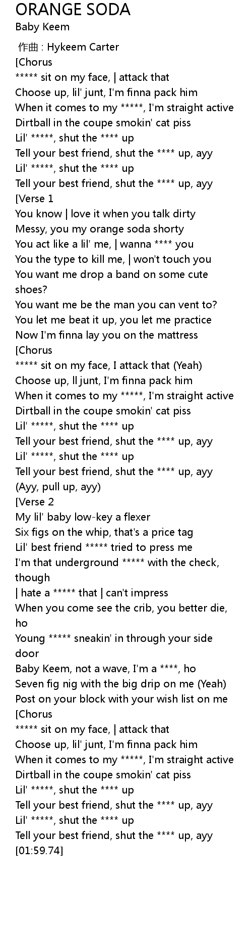 | [00:25.24] | Messy, you my orange soda shorty |