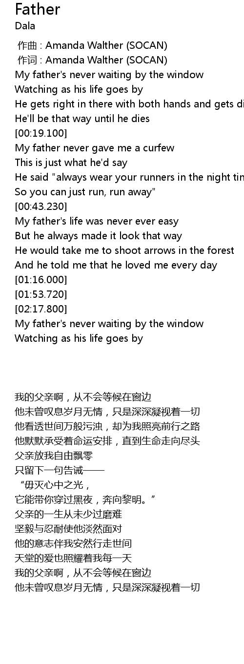 | [00:01.00] | 作词 : Amanda Walther (SOCAN) |