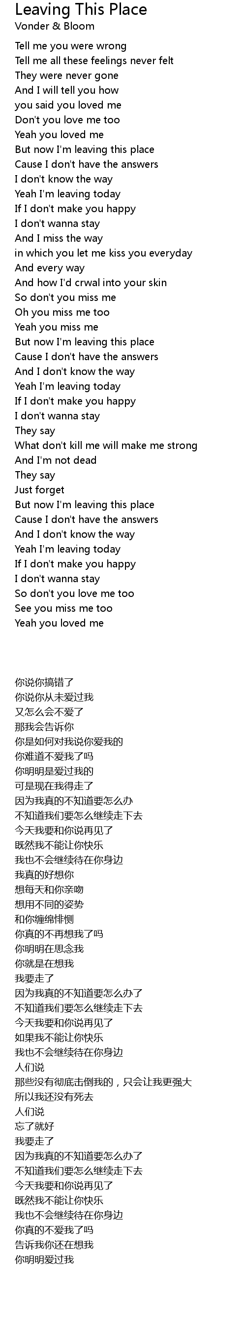 But now I'm leaving this place |