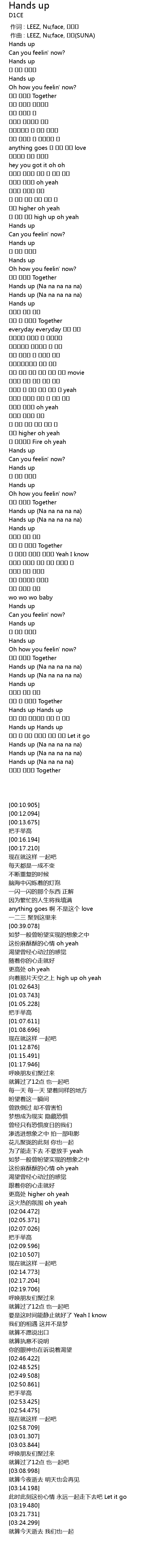 | [03:16.412] | 지금 이 기분 영원히 함께 가자 Let it go |