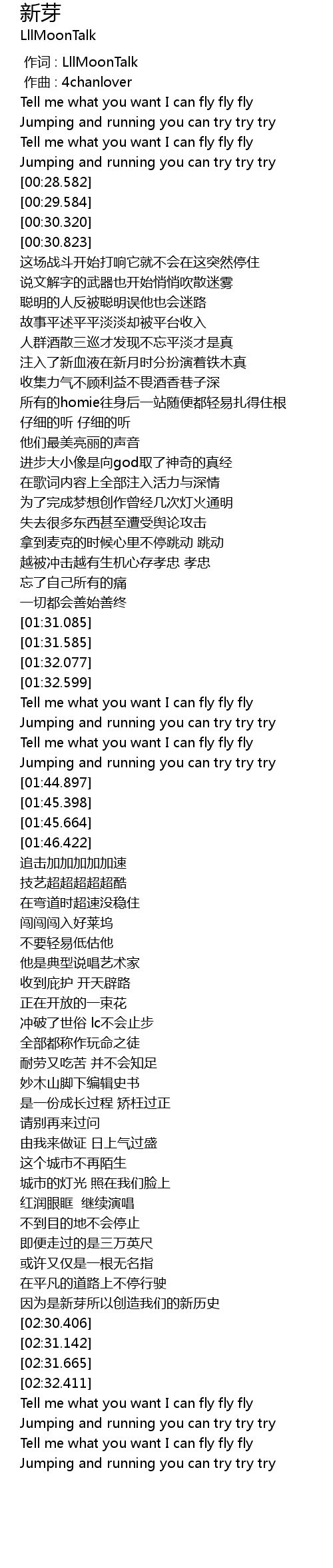 | [00:22.791] | Tell me what you want I can fly fly fly |