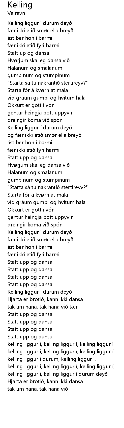 | kelling liggur í, kelling liggur í, kelling liggur í, | |