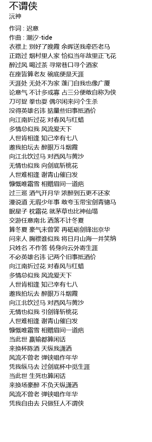 | píng wǒ zì yóu qù zhǐ zuò kuáng rén bù wèi xiá |