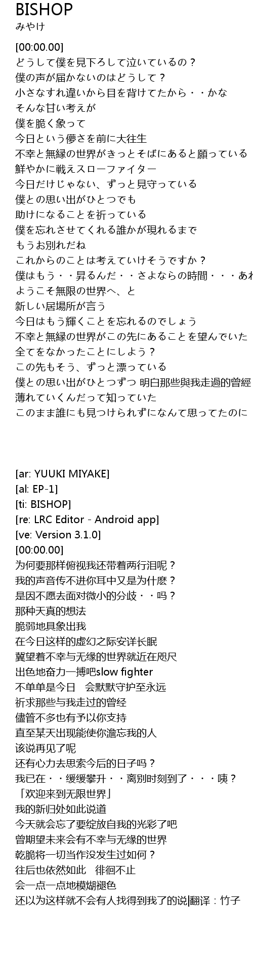 | [02:46.80] | 僕との思い出がひとつずつ 明白那些與我走過的曾經 薄れていくんだって知っていた |