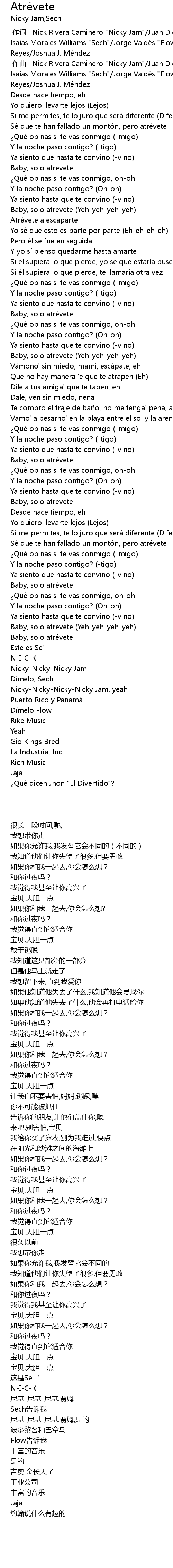 | [00:00.00] | zuò cí : Nick Rivera Caminero " Nicky Jam" Juan Diego Medina Carlos Isaí as Morales Williams " Sech" Jorge Valdé s " Flow" Manuel E. Corté s Jhonattan Reyes Joshua J. Mé ndez |