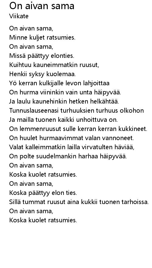 | On aivan sama, | |