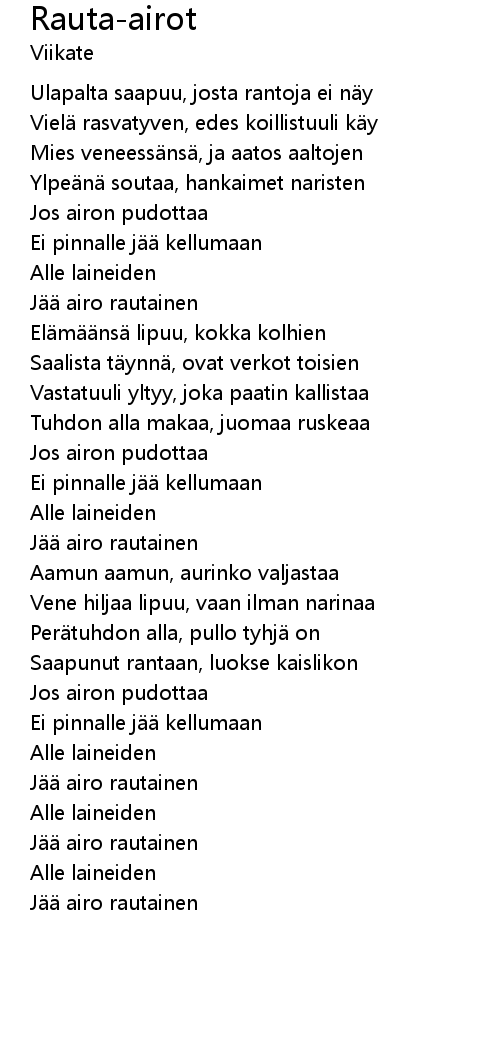 | Vene hiljaa lipuu, vaan ilman narinaa | |