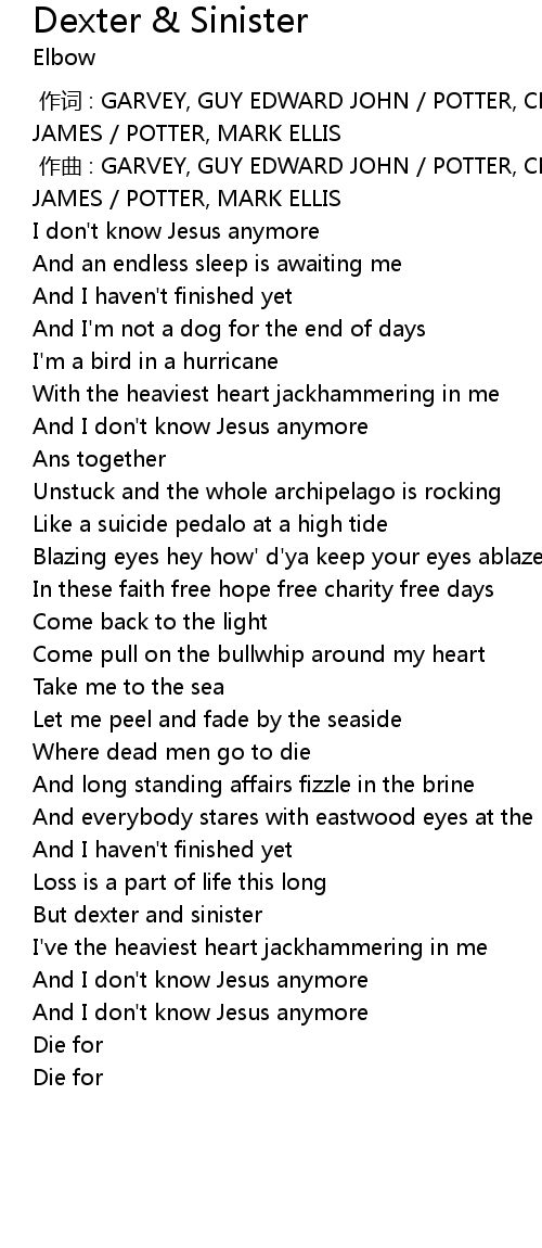| [00:00.00] | 作词 : GARVEY, GUY EDWARD JOHN / POTTER, CRAIG LEE / TURNER, PETER JAMES / POTTER, MARK ELLIS |