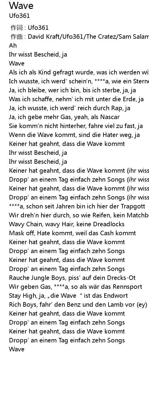 | [01:26.27] | Keiner hat geahnt, dass die Wave kommt (ihr wisst Bescheid, ja) |