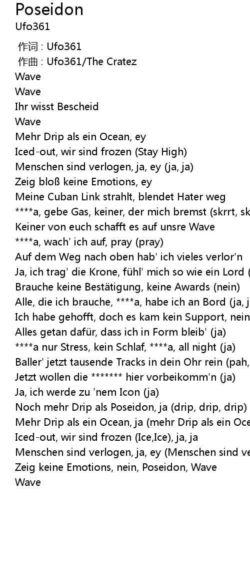 | [01:22.02] | Zeig keine Emotions, nein, Poseidon, Wave |
