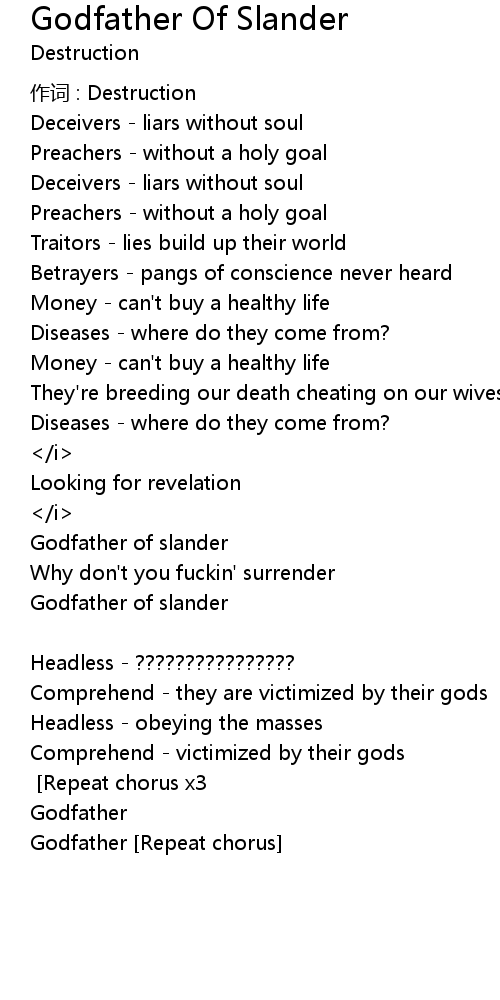 | A dreadful sect full of sadistic greed [Bridge:]</i> | |