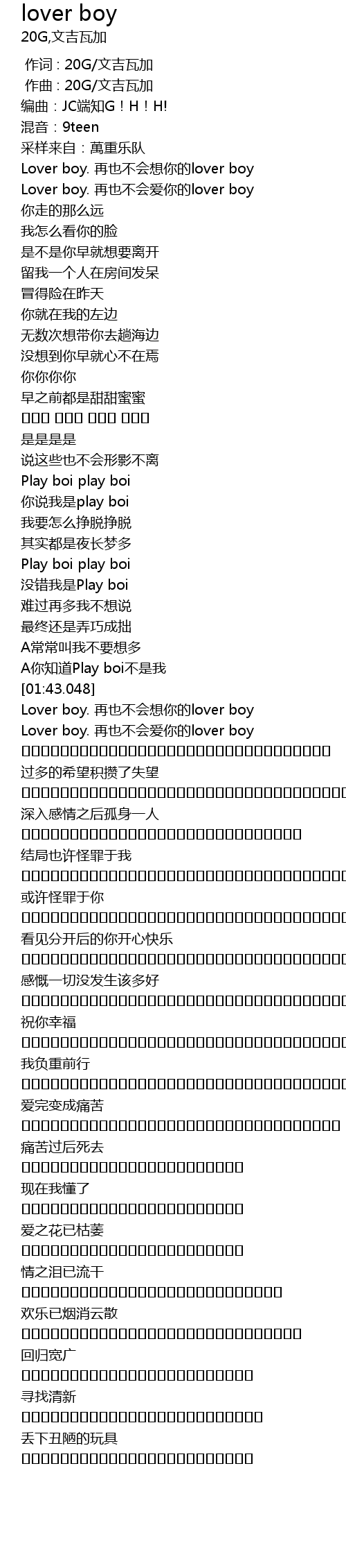 | [00:01.000] | 作曲 : 20G/文吉瓦加 |