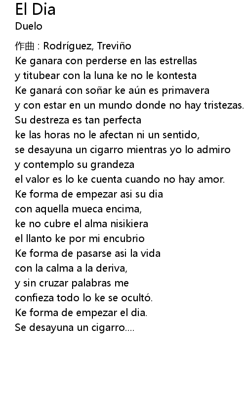| Song | El Dia |