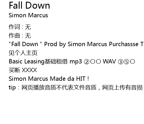 | "Fall Down " Prod by Simon Marcus Purchassse This Beat Contact me 见个人主页 | |