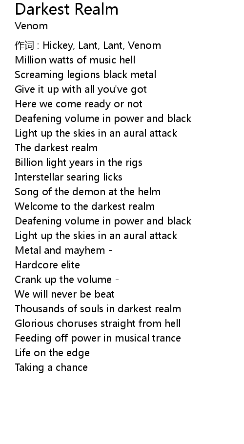 | 作词 : Hickey, Lant, Lant, Venom | |
