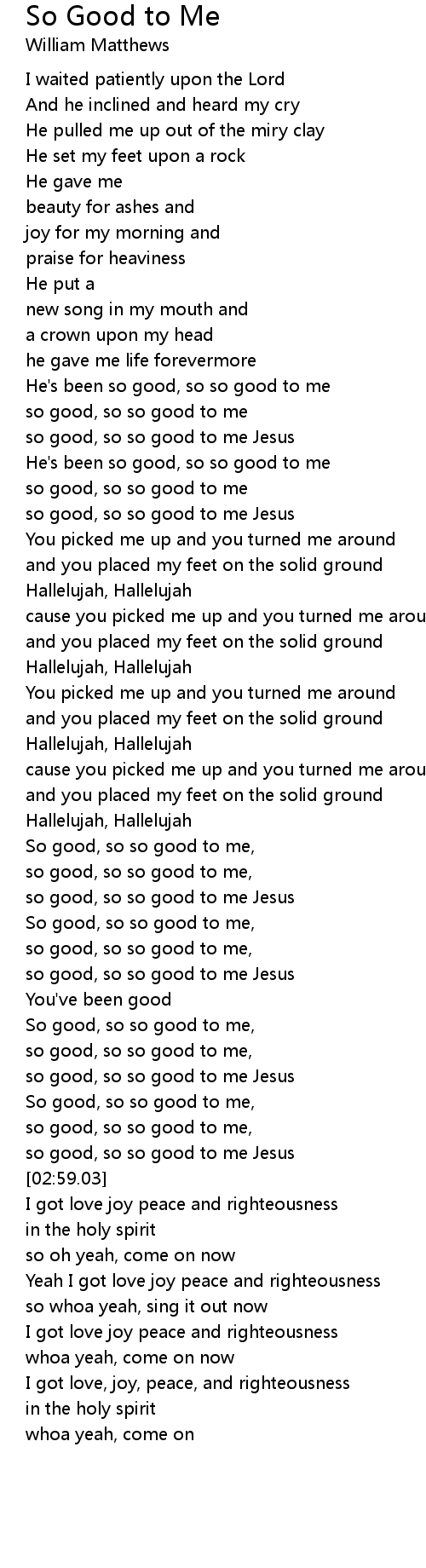 He's been so good, so so good to me |