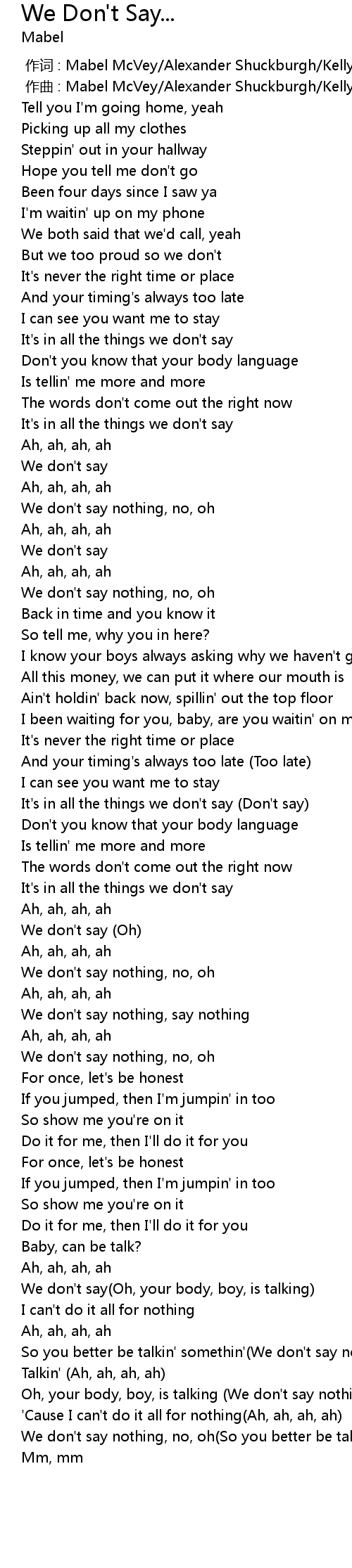 | [02:53.08] | We don't say nothing, no, oh(So you better be talkin' somethin') |