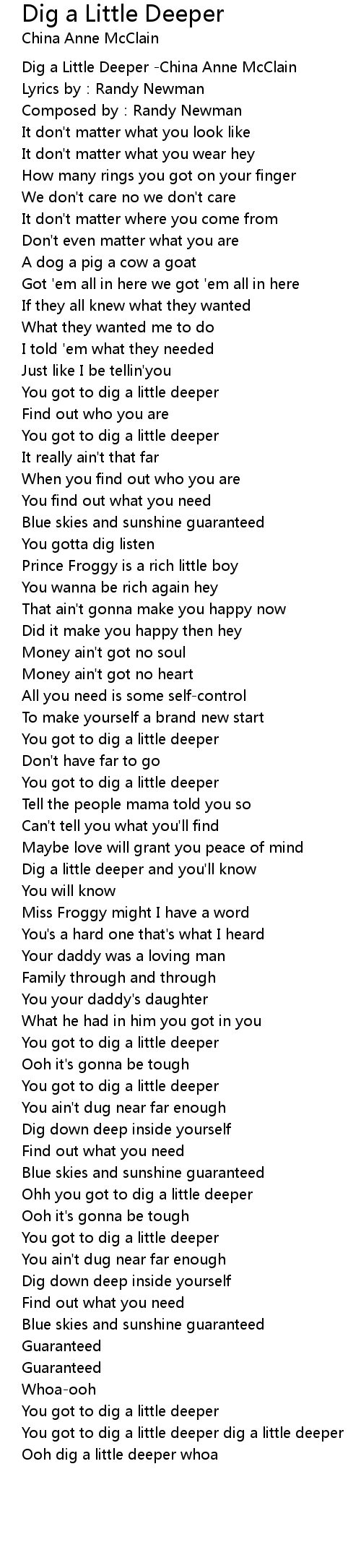 | [02:26.196] | You ain' t dug near far enough |