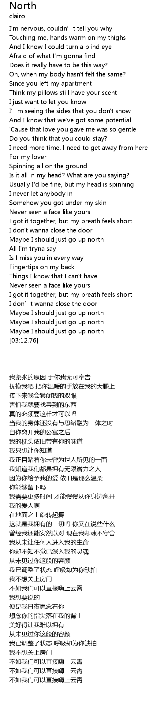 | [02:48.75] | Maybe I should just go up north |
