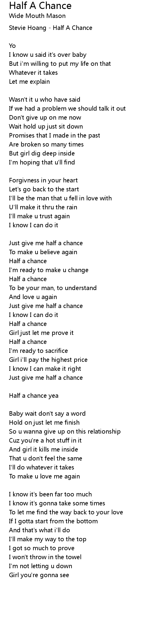 Just give me half a chance |