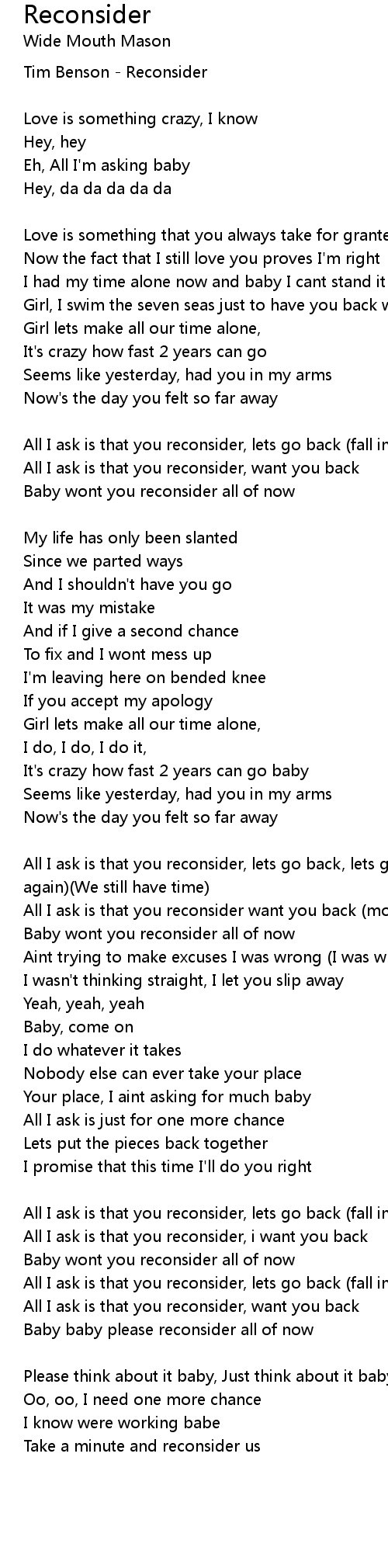 Reconsider Lyrics