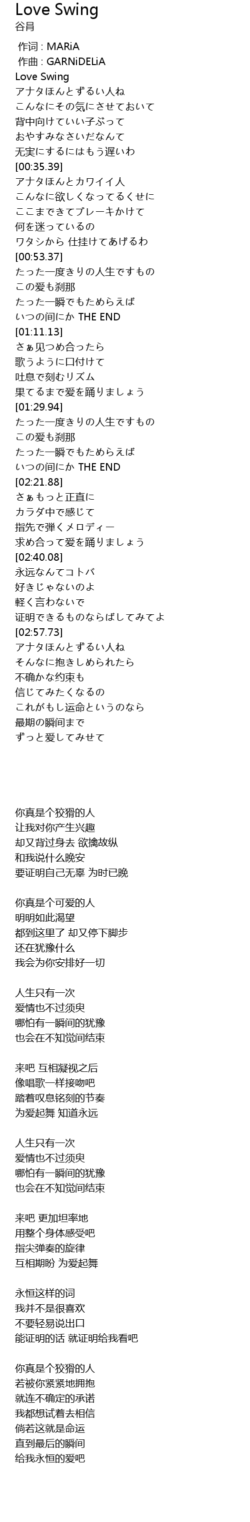 作词 : MARiA |