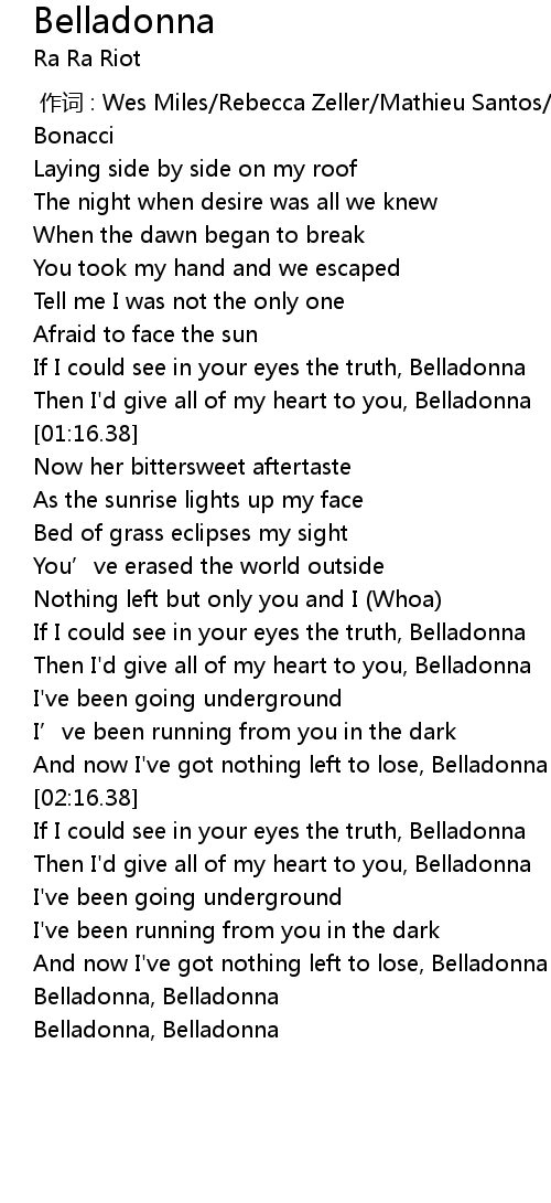 | [01:54.90] | Then I' d give all of my heart to you, Belladonna |