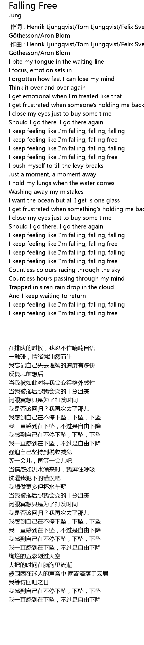| [01:48.338] | I keep feeling like I'm falling, falling free |