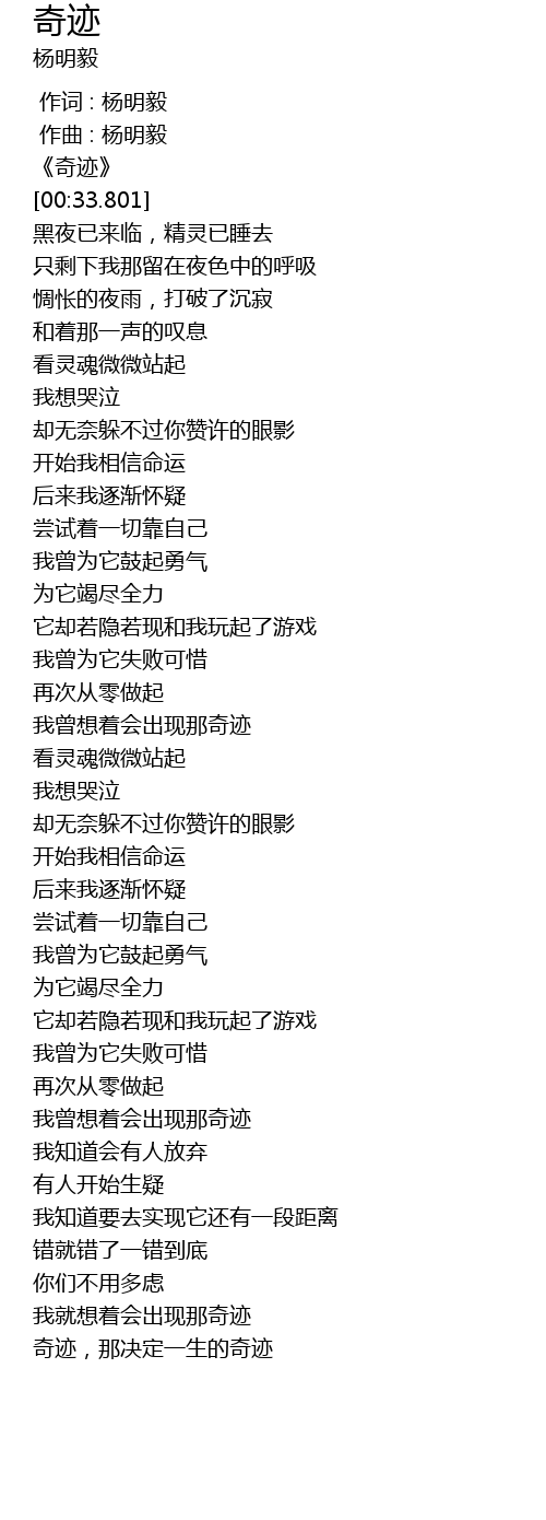 | [03:12.113] | 奇迹,那决定一生的奇迹 |