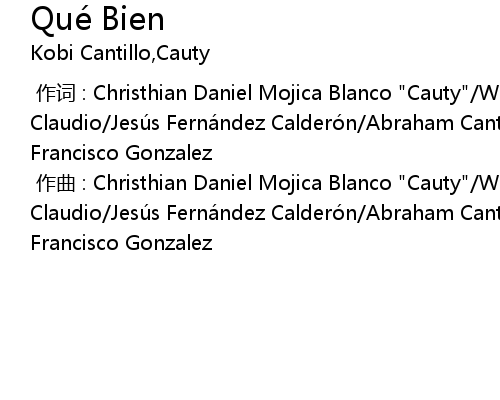 | [00:00.00-1] | zuò qǔ : Christhian Daniel Mojica Blanco " Cauty" Wilfredo Ortiz Claudio Jesú s Ferná ndez Calderó n Abraham Cantillo Estelyn Polanco Luis Francisco Gonzalez |