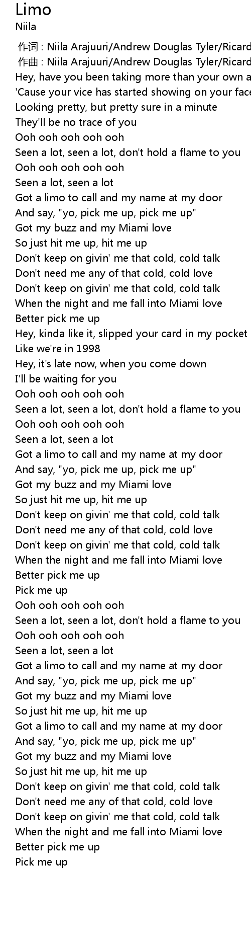 | [02:38.550] | Got my buzz and my Miami love |