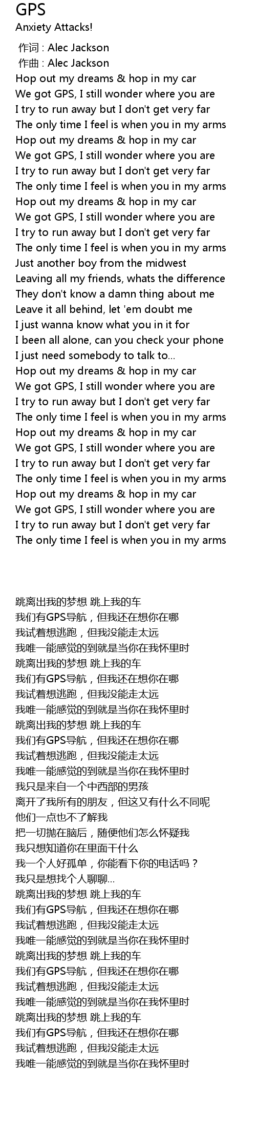 | [00:20.386] | We got GPS, I still wonder where you are |