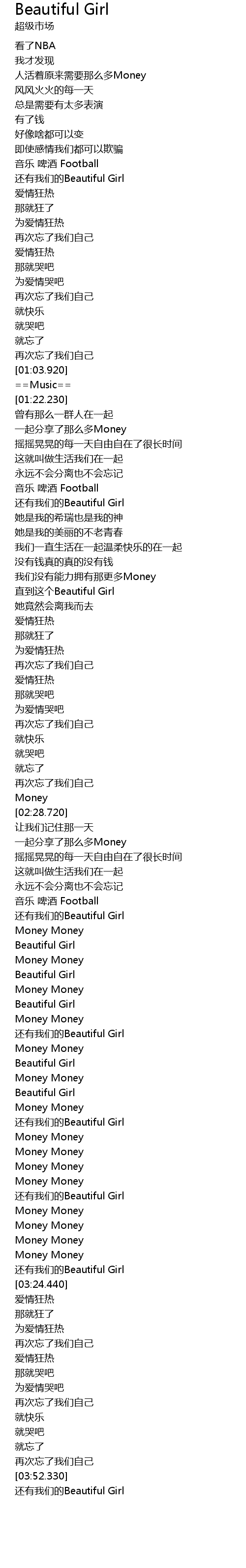 | [03:04.400] | 还有我们的Beautiful Girl |