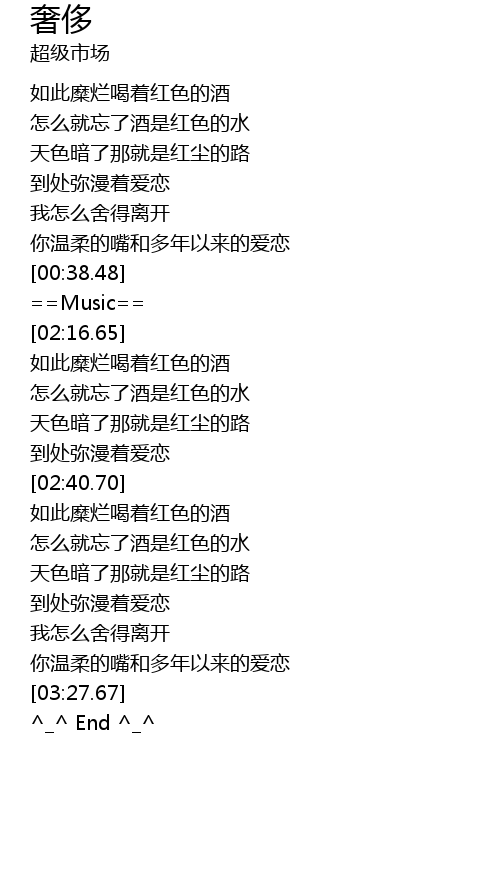 | [02:22.71] | 如此糜烂喝着红色的酒 |
