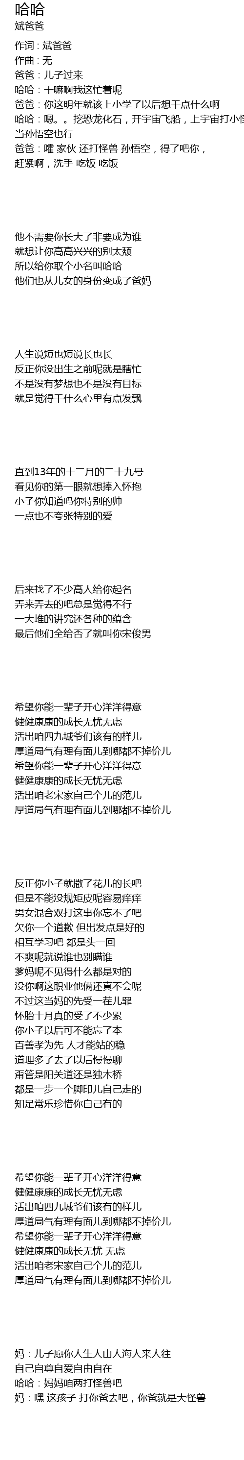 | 所以给你取个小名叫哈哈 | |