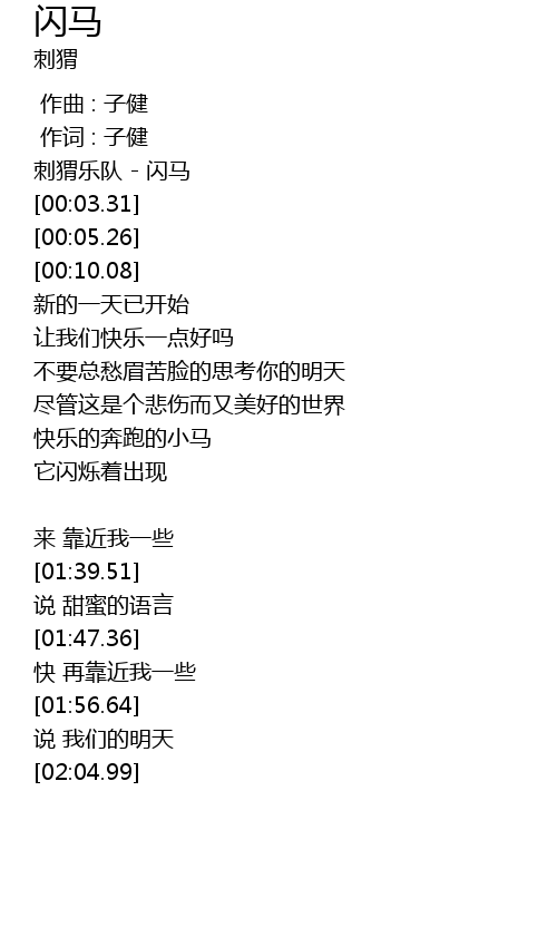 | [00:00.00] | 刺猬乐队 - 闪马 |