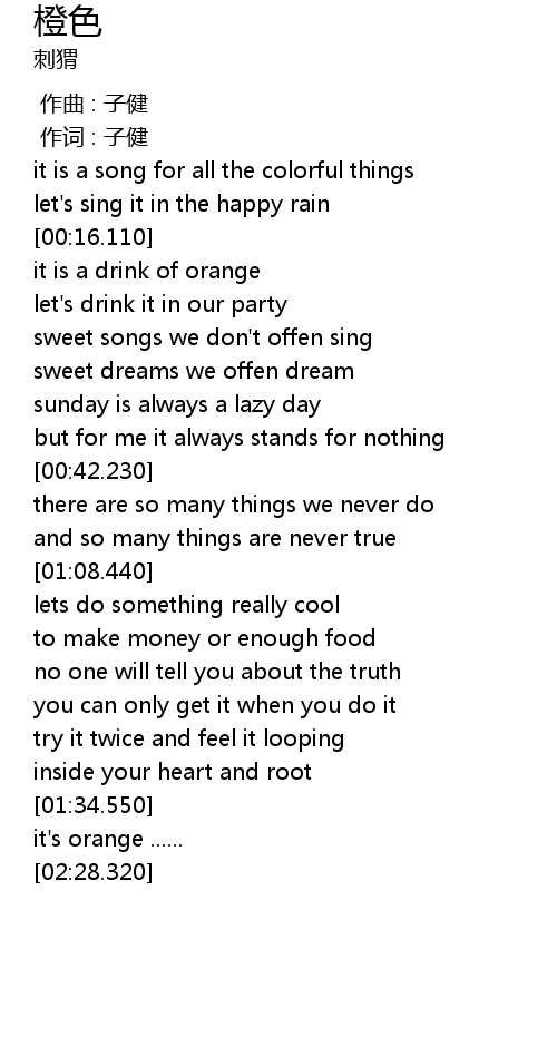 | [02:10.800] | it' s orange ...... |