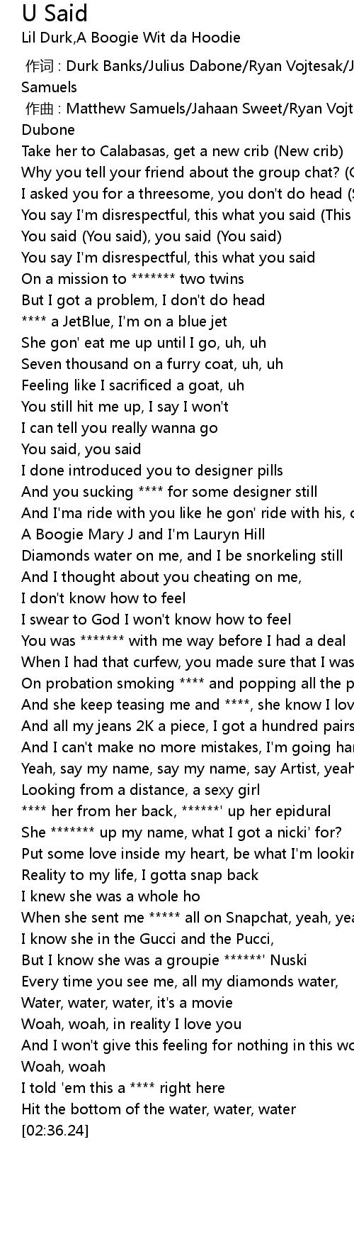| [00:33.78] | You say I'm disrespectful, this what you said |
