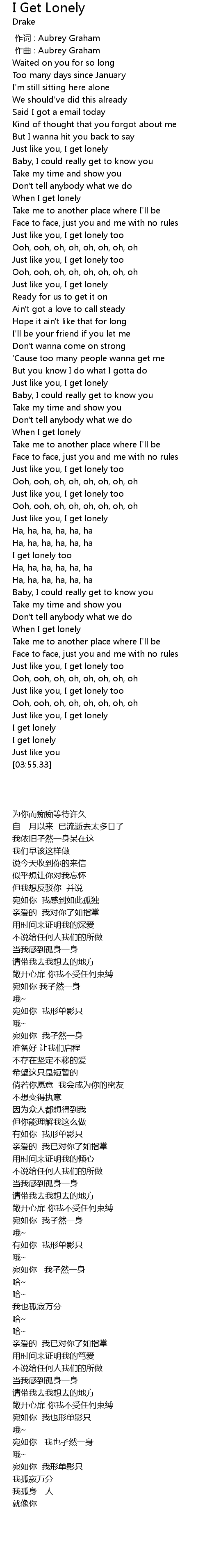 | [00:55.88] | Just like you, I get lonely too |