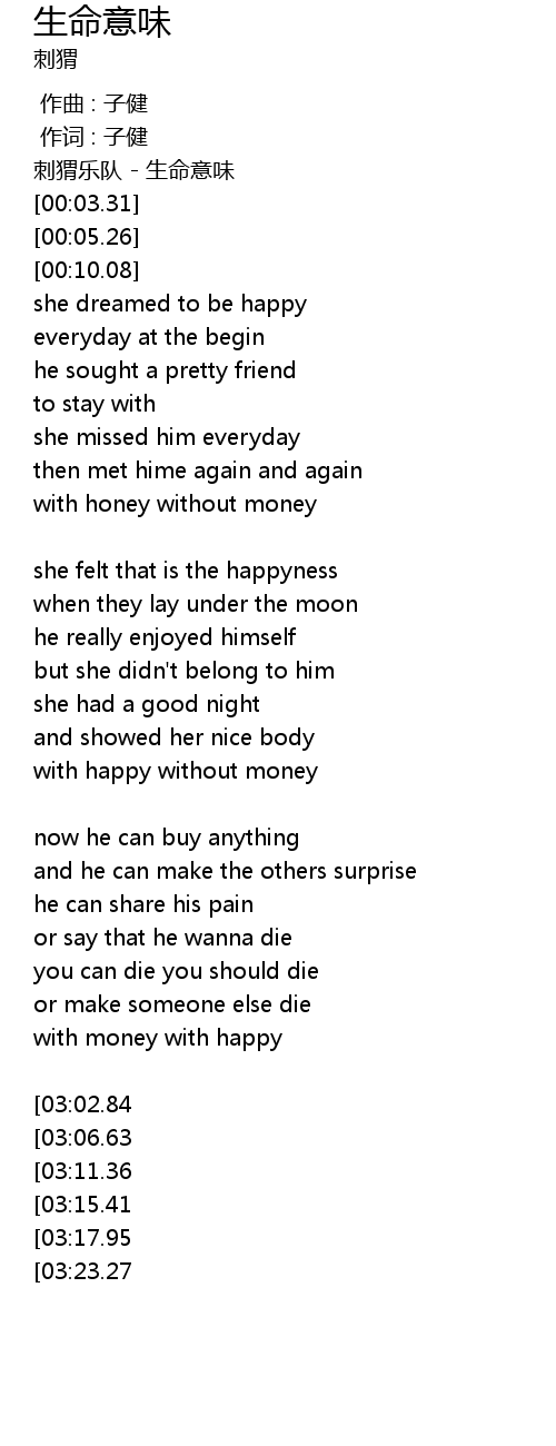 | [00:00.00] | 刺猬乐队 - 生命意味 |