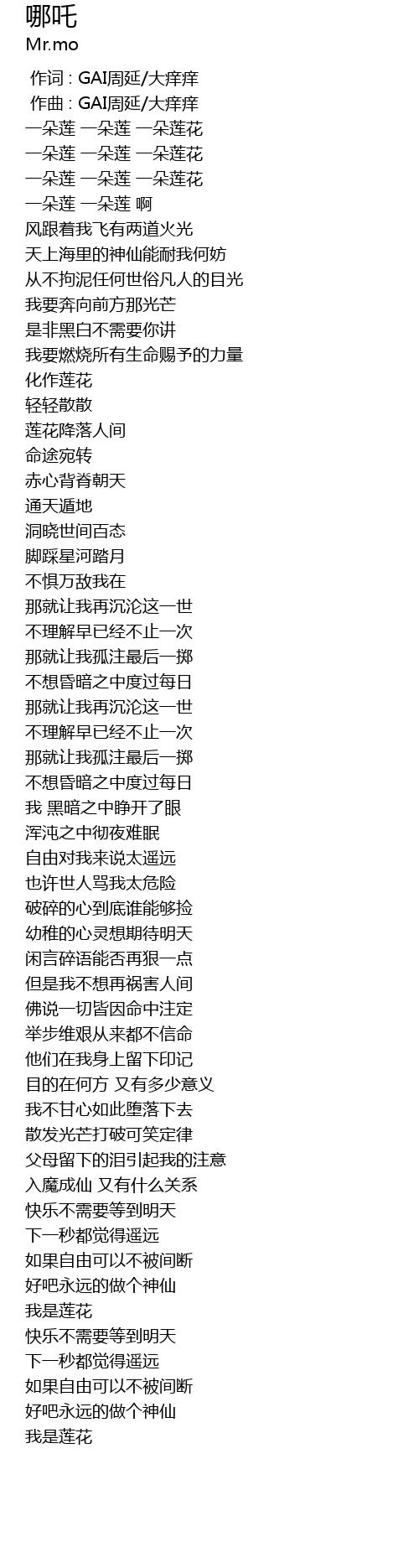 | [00:00.000] | 作词 : GAI周延/大痒痒 |