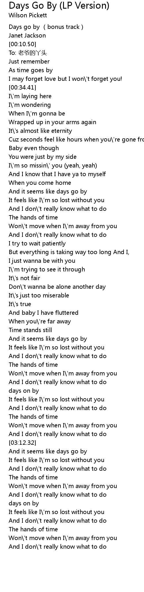 | [03:52.10] | days on by |