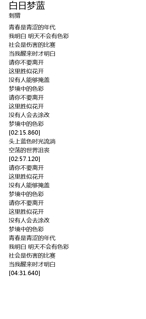 | [04:03.350] | qīng chūn shì qīng sè de nián dài |