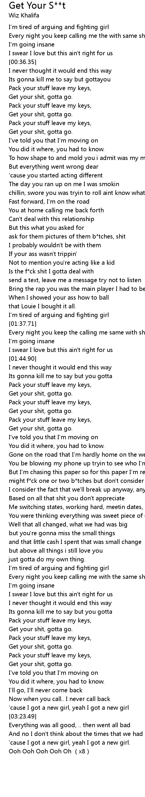 | [00:42.85] | Get your shit, gotta go. |